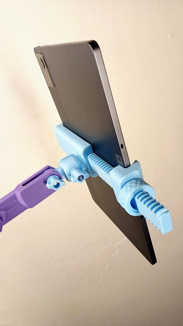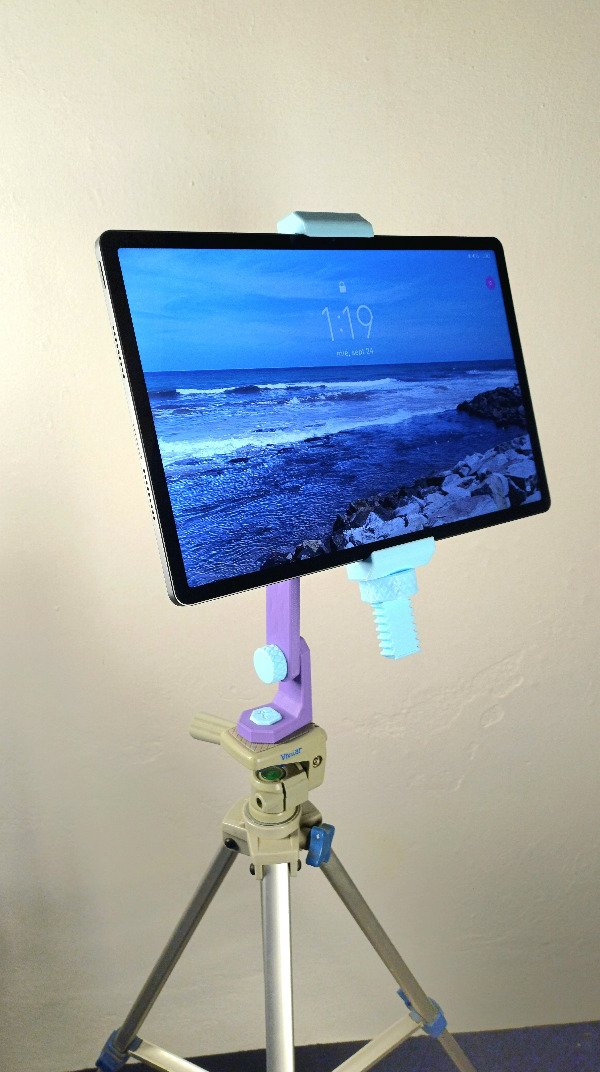 Con esta herramienta vas a poder montar tu tablet en trípodes de fotografia, pies de aros de luz y cualquier pie con rosca universal de 1/4.